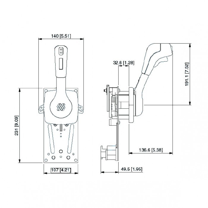 Контроллер B310B совмещенного управления газом/реверсом вертикального крепления с фиксатором режима холостого хода и кнопкой откидки подвесного лодочного мотора. Предназначен для одноходового управления газом/реверсом плм. Предусмотрена возможность установки контроллера как на правый, так и на левый борт.