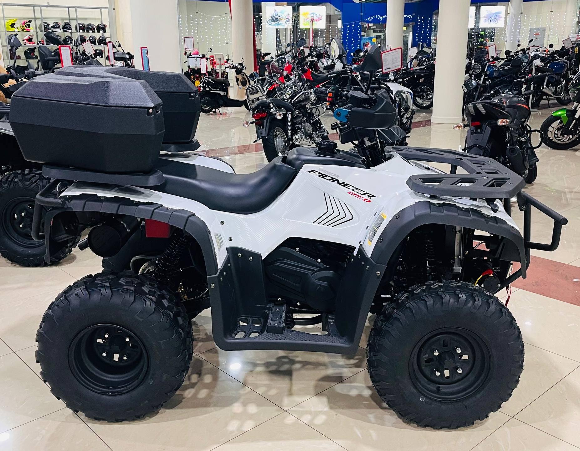 Инженеры установили в квадроцикл 250-кубовый двигатель с эффективным водяным охлаждением. Электростартер позволяет начать поездку без лишних усилий. Уверенность на любом маршруте обеспечивает современная тормозная система: и передний, и задний гидравлический дисковый тормоз гарантируют предсказуемое замедление. Не менее важна передняя подвеска на двойных А-образных рычагах и задняя на продольно рычажных рычагах, которая эффективно поглощает неровности, обеспечивая комфорт и постоянное сцепление с поверхностью. С емкостью топливного бака 13 литров и разумным расходом топлива 5,5л на 100км/ч квадроцикл 250 4x2 способен развивать скорость до 65км/ч, а комфортное и мягкое сиденье сделает дальнюю поездку приятной и комфортной.