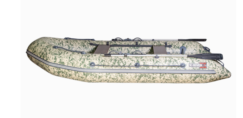 Лодка ПВХ X-River Rocky 415 НДВД + усиленное дно и баллон, пиксель/фурнитура серая