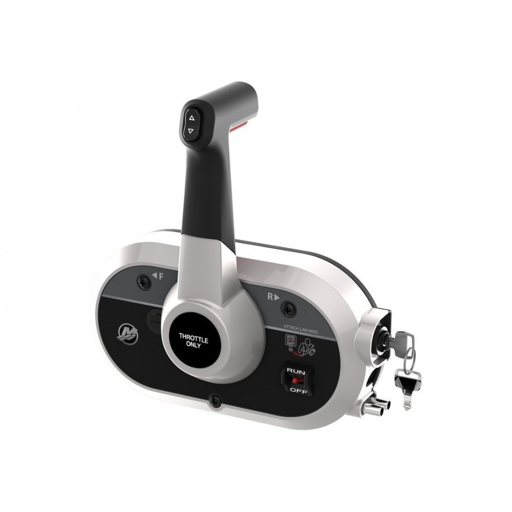 Водомет Mercury Jet 80 оснащен системой гидравлического дистанционного управления, отличающейся многофункциональностью, контролирующей угол открытия дроссельной заслонки, регулирующей угол дифферента мотора на транце катера, остановку, запуск и основные параметры работы двигателя.